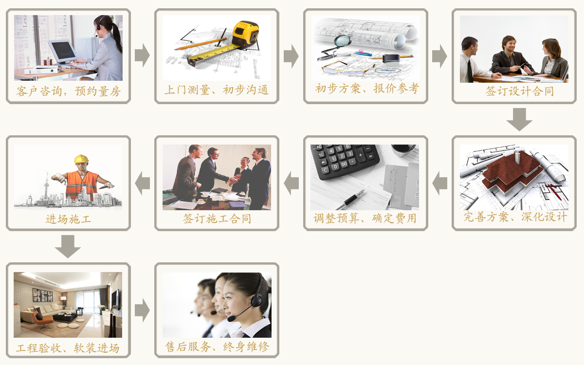 (1)交底:設計師、項目經理、業(yè)主、電工三方現(xiàn)場交底,做進場前交待;公司人員協(xié)同客戶辦理相關物業(yè)手續(xù)。