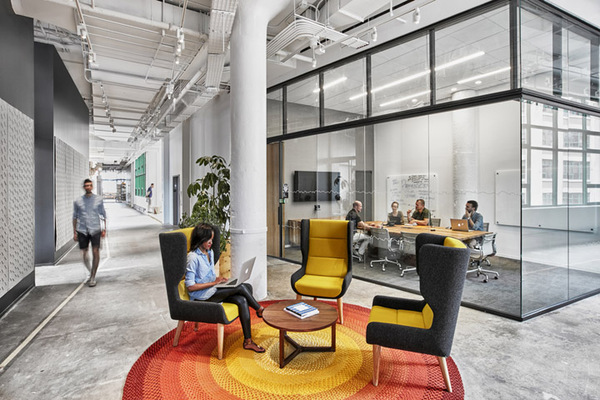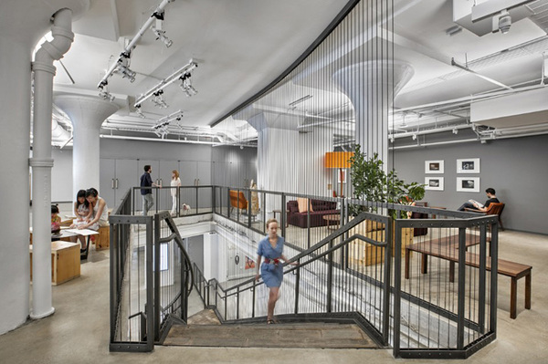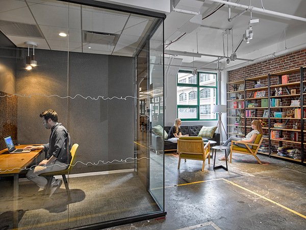 今天,上海辦公室裝修設(shè)計(jì)公司-領(lǐng)企裝飾要與大家分享的是,電商Etsy紐約總部辦公室裝修設(shè)計(jì)。對(duì)手工藝品的執(zhí)著追求是貫穿本案的設(shè)計(jì)宗旨,同時(shí)也與充滿活力的Etsy形成文化上的共鳴。設(shè)計(jì)師以故事空間向人們娓娓講述著Etsy的哲學(xué),采購(gòu)源自于當(dāng)?shù)氐牟牧?、自然環(huán)保的材料、回收再利用的材料,來(lái)營(yíng)造一個(gè)有著濃厚人文情懷的空間之旅。