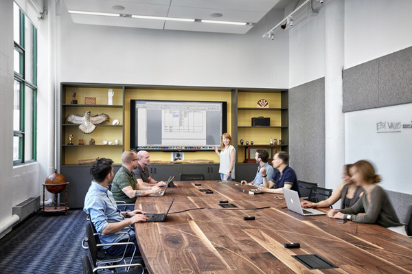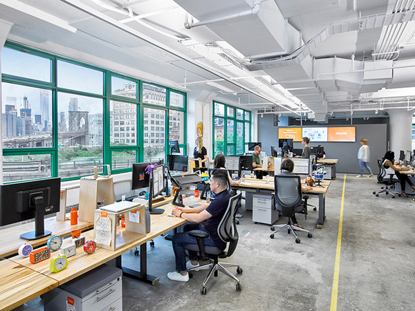 Etsy布魯克林總部跨越九個(gè)樓層,而每一個(gè)樓層都是一個(gè)完整均衡的生態(tài)系統(tǒng),幾乎每個(gè)樓層都設(shè)有廚房鼓勵(lì)大家回收資源。除了花樣繁多的功能空間,如工作區(qū)、協(xié)作區(qū)、會(huì)議區(qū)和演示區(qū)等,頂層特地設(shè)計(jì)為休閑放松的屋頂露臺(tái),并安裝有太陽(yáng)能板為室內(nèi)提供能源。