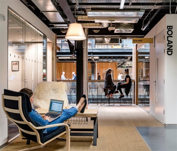 今天,上海辦公室裝修-領(lǐng)企裝飾要與大家分享的是,Airbnb位于都柏林的辦公室裝修設(shè)計(jì)。和Airbnb公司在其他地區(qū)的辦公室裝修設(shè)計(jì)一樣,都柏林的辦公室裝修設(shè)計(jì)也是以“家”為主題,與眾不同的是,設(shè)計(jì)師為了提高員工之間彼此視野的通透以及方便的交流,Airbnb的環(huán)境設(shè)計(jì)團(tuán)隊(duì)納入“鄰里”的概念,讓員工能在一個單獨(dú)的討論空間聚集起來。