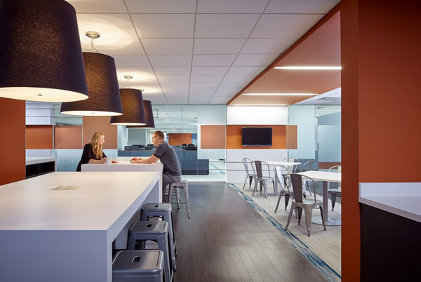 辦公室裝修設(shè)計(jì)以藍(lán)色來(lái)映襯橙色(公司標(biāo)識(shí)色),簡(jiǎn)約而醒目的色塊組合營(yíng)造出青春活力氛圍。整體色調(diào)與其企業(yè)風(fēng)格相呼應(yīng),形成統(tǒng)一的視覺體系。
