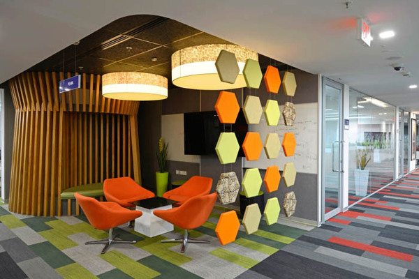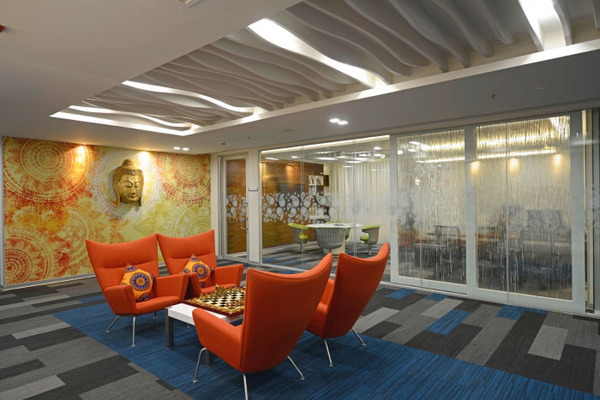 上海辦公室裝修公司-領(lǐng)企裝飾今天與大家分享的是,印度海德拉巴Pegasystems辦公室裝修設(shè)計(jì)。其辦公室裝修設(shè)計(jì)充分體現(xiàn)了熱情洋溢的異域印度風(fēng)情。