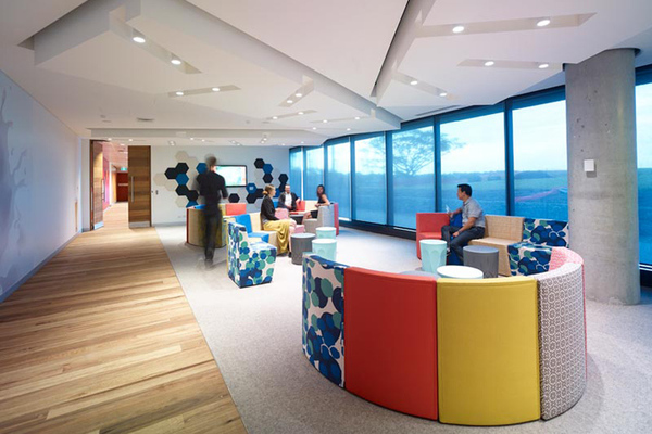 每層都配有舒適的社交空間以契合公司的品牌文化,四個(gè)樓層分別以澳大利亞優(yōu)美的環(huán)境象征來(lái)命名:景觀公園、美麗的后花園、假日海灘、夏日葡萄園。