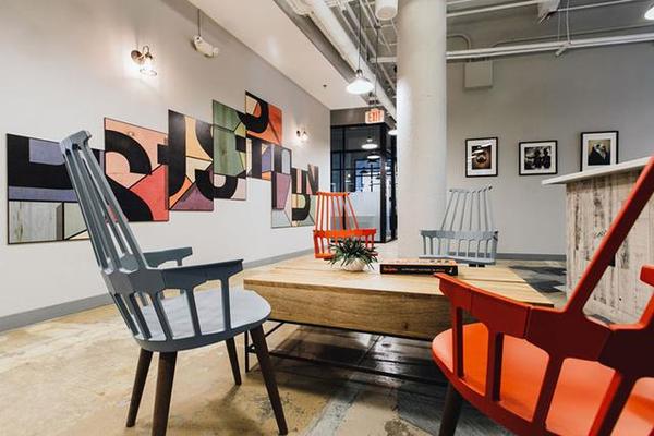 上海辦公室裝修設計公司-領企裝飾今天要與大家分享的是,美國波士頓WeWork的辦公室裝修設計。其辦公室自身散發(fā)著獨特的工業(yè)風特質:高聳的梁架天花、堅固的粗壯的柱子以及斑駁的水泥地面。WeWork占據(jù)這幢九層磚混建筑的五個樓層。巨大的玻璃外窗,讓陽光自由傾瀉入繽紛多彩的公共區(qū)域。位于后部的開放辦公區(qū),人們可以將塞岬海峽的美景一覽無余。地下室的休閑區(qū)類似一個運動吧,經(jīng)過一天的緊張工作,人們可以在此盡情放松享受快樂時光。