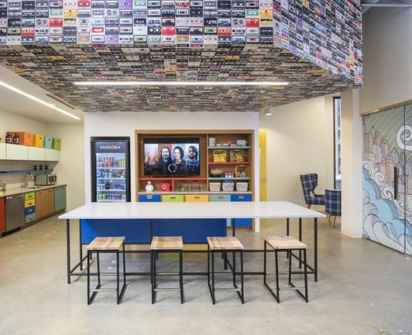 上海裝飾公司-領(lǐng)企裝飾今天要與大家分享的是,明尼阿波利斯Pandora公司的辦公室裝修設(shè)計。設(shè)計師在音樂元素的基礎(chǔ)上,結(jié)合明尼阿波利斯當(dāng)?shù)氐奈幕?,以全新的理念打造一個時尚潮流的辦公新環(huán)境。