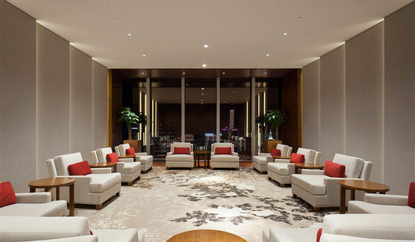 接待區(qū)的造型整體簡(jiǎn)潔**視覺(jué)沖擊,正面縱向的木色格柵代表造紙業(yè)的原材料木材。