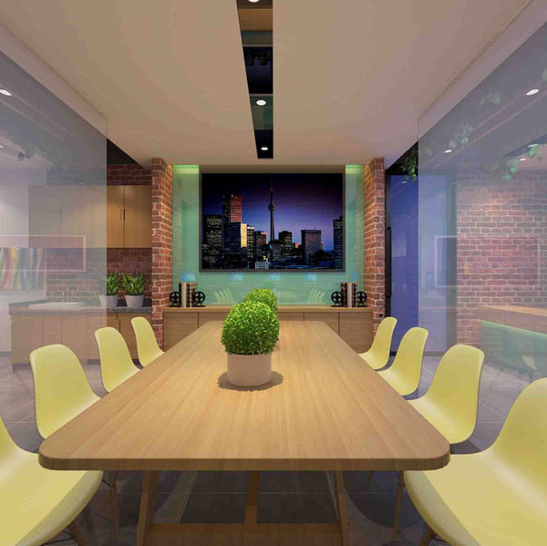 會(huì)議室的設(shè)計(jì),設(shè)計(jì)師采用取中的手法,將會(huì)議室很好的融入辦公室區(qū)域與茶水間之間,使的空間得到進(jìn)一步利用。
