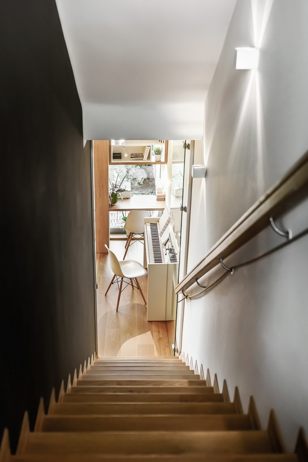 設計團隊盡可能充分的利用空間的每一角落,在玻璃落地窗邊,定制出簡易實用的工作區(qū)域,練琴房也擺放于此,讓陽光、美景、伴隨著每天的工作時光。