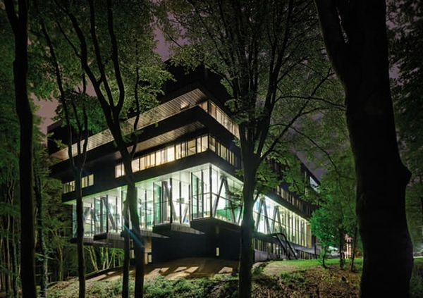 荷蘭的格魯特-克里蒙達(dá)爾康復(fù)中心,座落于東部的一片森林之中,環(huán)境非常幽靜。在設(shè)計(jì)上,這家醫(yī)院主要采用古銅色鋁板和玻璃。這一設(shè)計(jì)背后的想法是,投入大自然的擁抱有利于患者的治療。