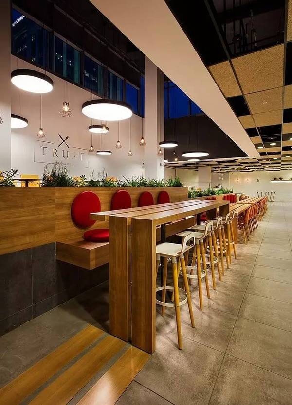 為了加強一體化理念,咖啡休息室被放置在這個行業(yè)的旁邊,雙方合作者和客戶聚集在一個非正式的聚會和輕松的環(huán)境中。 開放計劃中的操作區(qū)域也是在整合,協(xié)作和靈活的范式下構想的:寬敞的120°工作位置,低半透明玻璃面板和舒適的扶手椅分布在非正式聚會區(qū)域。