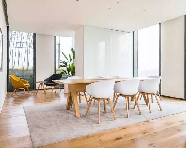 每天,人們都會(huì)在辦公室中呆很久,所以設(shè)計(jì)師希望創(chuàng)造一個(gè)舒適而又智慧的場所。設(shè)計(jì)師為天花上的燈加上了一層反射膜,這樣整個(gè)天花都能發(fā)出柔和的漫反射光。這是一個(gè)充滿創(chuàng)新而又微妙的設(shè)計(jì),連接室內(nèi)外。諸如用戶自己設(shè)計(jì)的地毯和藝術(shù)品這類的細(xì)節(jié),也顯示出外灘SOHO的空間精神,同時(shí)也給這個(gè)開放大空間以豪華而又親密之感。