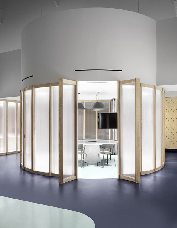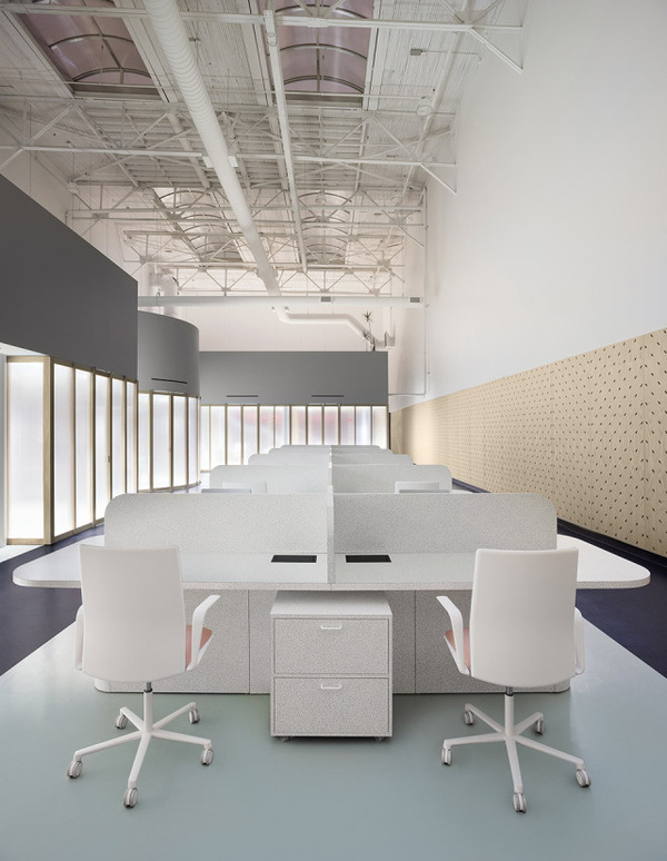 Gruppo Campari對于多倫多辦公室的設(shè)計(jì)要求十分簡單,即創(chuàng)造一個(gè)充分體現(xiàn)公司精神并且可以激發(fā)使用者靈感的空間。Campari標(biāo)志性的海報(bào)有上百年歷史,種類豐富,充滿創(chuàng)意。建筑師從海報(bào)和食材中提取顏色、圖案以及形狀,并將它們層層重疊,直到形成一個(gè)平衡的三維空間。