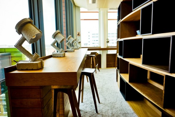 辦公室辦公桌桌板前緣應(yīng)呈圓滑狀的斜邊設(shè)計(jì),或是四分之一圓設(shè)計(jì),以避免傳統(tǒng)的直角設(shè)計(jì)會(huì)壓迫手肘部份血管的弊病。目前的辦公桌設(shè)計(jì)已到了思考延伸的地步,員工在辦公桌前不一定要坐著,有許多需要站著的工作,例如專職查詢、制圖之類的工作,這就需要較高的桌面。此外,在辦公室辦公桌的材質(zhì)選擇方面,也不再局限于鋼制一種,多樣材質(zhì)如強(qiáng)化玻璃、皮革、木材、鋁合金的加入讓辦公桌椅的變化更大,也呈現(xiàn)出更加活潑的面貌。