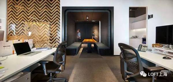 木材表面、日光和綠色墻壁給‘休閑就餐’區(qū)域帶來(lái)了大自然的感覺(jué)。采用對(duì)比色的地板標(biāo)示出了環(huán)繞在辦公室核心地帶周圍的‘跑道’循環(huán)路線。