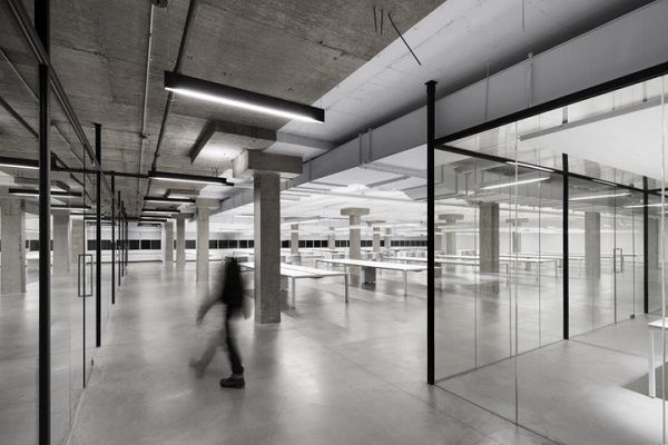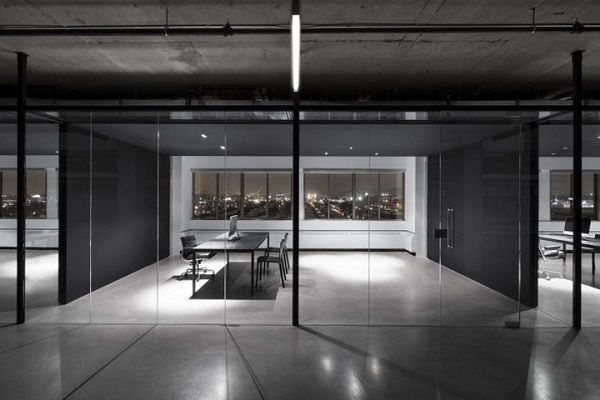 這個(gè)黑白灰的經(jīng)典工業(yè)風(fēng)格就是 Accesolab位于墨西哥的辦公室設(shè)計(jì)了?;疑谶@里的使用程度只能用一個(gè)詞來形用——鋪天蓋地。從天花板到地面,從燈具到桌椅板凳,無不是用各種明暗程度不一的灰色裝飾。但是設(shè)計(jì)師選用了帶有線條的地毯和直線延伸的吊頂,辦公室空間的工業(yè)氣息一下鋪面而來。