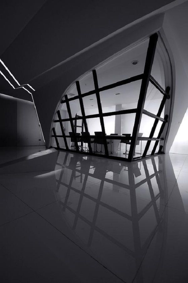 看到這個(gè)會(huì)議室,你會(huì)聯(lián)想到什么?領(lǐng)企小編我首先想到的是船頭。船頭是劈開大海波浪,帶領(lǐng)船身乘風(fēng)破浪向前進(jìn)的地方。把會(huì)議室裝修成船頭恐怕也是這個(gè)用意吧。辦公室設(shè)計(jì)大量運(yùn)用灰色的原因恐怕就是灰色是無彩色,即沒有色相和純度,只有明度,使用灰色能夠?yàn)榱送怀鲞@里的結(jié)構(gòu)設(shè)計(jì)了吧。
