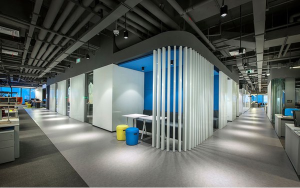 本案例采用木材表面、日光和綠色墻壁給‘休閑就餐’區(qū)域帶來了大自然的感覺。采用對比色的地板標(biāo)示出了環(huán)繞在辦公室核心地帶周圍的‘跑道’循環(huán)路線。激發(fā)獨(dú)特的全新辦公空間的創(chuàng)造力和協(xié)作性。領(lǐng)企設(shè)計:www.suhangsanye.com.cn(領(lǐng)企設(shè)計官方網(wǎng)站更多相關(guān)內(nèi)容)