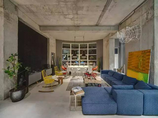 整個(gè)空間的墻體和屋頂沒有做處理,保留了原始的味道,大膽的顏色和有創(chuàng)意的家具,是它的亮點(diǎn),也是設(shè)計(jì)的重點(diǎn),高純度的黃色和藍(lán)色的碰撞,為空間增加了時(shí)尚感。