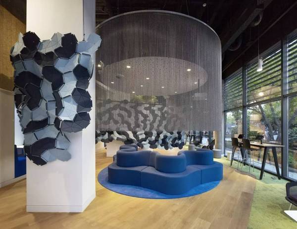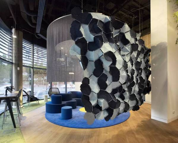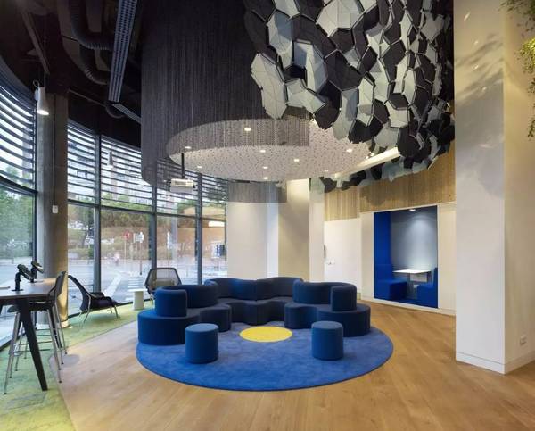 為了滿足多種用途,設(shè)計(jì)師在大廳里構(gòu)建了一個(gè)多功能的空間,人們可以根據(jù)需要巧妙的改變布局規(guī)劃,而且這個(gè)地方無論是從視覺或聲學(xué)角度都具有一定的隱密性,再加上那些可移動(dòng)的裝修元素,使得人們可以在不破壞天花板或者地板的情況下,在視覺上享受到空間的連續(xù)性。