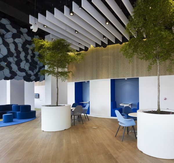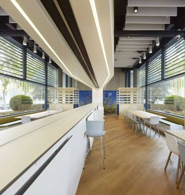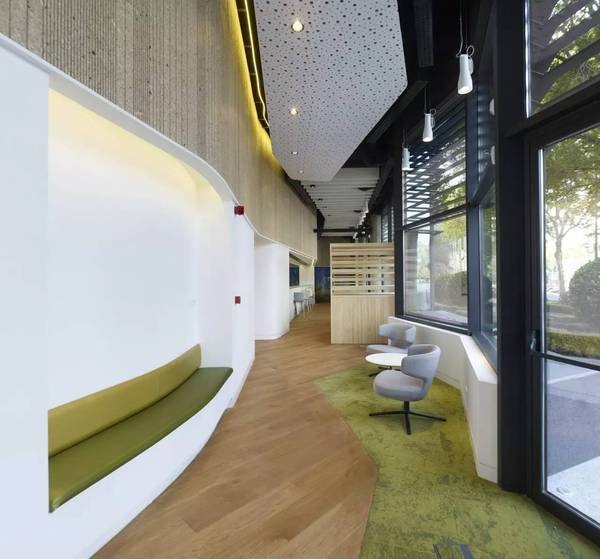 這個(gè)地方不僅僅只是訪客中心,它還必須兼具其他多種功能,比如用來傳達(dá)與公司產(chǎn)品有關(guān)的信息、發(fā)布新聞、舉行會(huì)議、服務(wù)客戶、供員工們吃飯休息喝咖啡、或者僅僅就是等人。