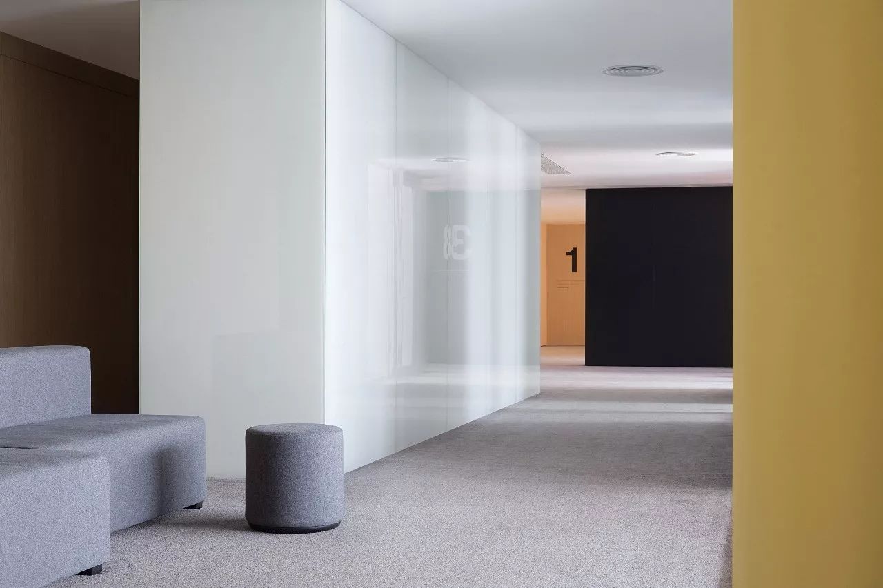 會(huì)務(wù)中心層的發(fā)光玻璃墻,滿足了整個(gè)空間的照明,同時(shí)又成為空間的視覺核心,營(yíng)造出純粹、安靜、脫俗的藝術(shù)辦公空間氛圍。