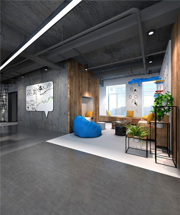 ? 休息區(qū)域的設計:設計師在的時候,將其安置在一個寧靜的角落,一則利用其空間自帶的屬性,二則為員工打造安逸、舒適、可以暫時忘卻煩惱的休息空間。