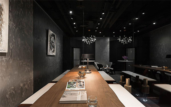 2、現(xiàn)代風(fēng)辦公室茶水間裝修設(shè)計(jì):壁面刷上特殊漆,利用手繪的溫度創(chuàng)造視覺(jué)層次,結(jié)合主燈及點(diǎn)狀燈的光影烘托,**提升空間質(zhì)感。此外,茶水間內(nèi)部除了擺設(shè)圓桌、跳色單椅外,更安排了一張木質(zhì)長(zhǎng)桌,增加座位席,同時(shí)亦為空間注入溫潤(rùn)感受,更運(yùn)用收納高柜將各式電器藏于立面中,辦公室設(shè)計(jì)師巧手將坪效發(fā)揮得****,打造宛如VIP等級(jí)的休憩空間。