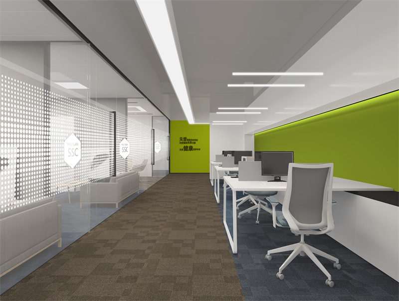 3、*后辦公室內(nèi)的采光一定要好,窗邊不要放置遮擋光線的物體。燈光可以選擇明亮的平板燈、吊線燈、筒燈等。室內(nèi)燈光一定要保持明亮,昏暗的燈光會(huì)讓人在視覺上感覺空間狹小。一些過到盡頭還可以放一些掛畫和裝飾,不僅能夠指引人員的流動(dòng),也能能加強(qiáng)空間的橫向延伸感。