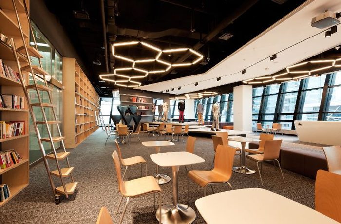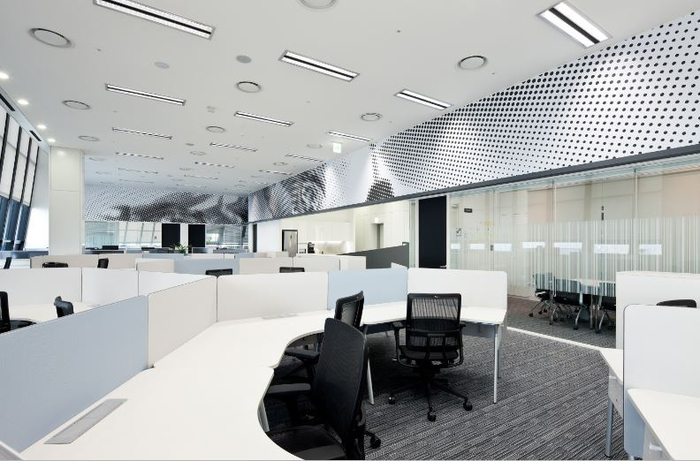 ? ? 德韋爾是一個(gè)工業(yè)材料集團(tuán)公司,化工和時(shí)尚。工作人員可以使用粉末室進(jìn)行頭腦風(fēng)暴和集中工作。辦公空間有不同的主題,根據(jù)他們所工作的品牌。在色彩和高對(duì)比度較強(qiáng)的線性設(shè)計(jì),前衛(wèi)的品牌形象是顯而易見的。